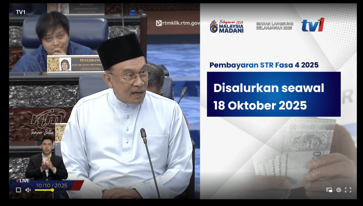 The Ministry of Finance announced that the Sumbangan Cash Rahmah (STR) Phase 4 will be credited starting 18 Oktober 2025 , just in time for Hari Raya Aidilfitri ! This is to help recipients prepare for the celebration.